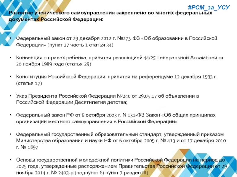 Российской Федерации» (пункт 17 часть 1 статья 34)Конвенция о правах ребенка, принятая резолюцией 44/25 Генеральной Ассамблеи от 20 ноября 1989 года (статья 29)