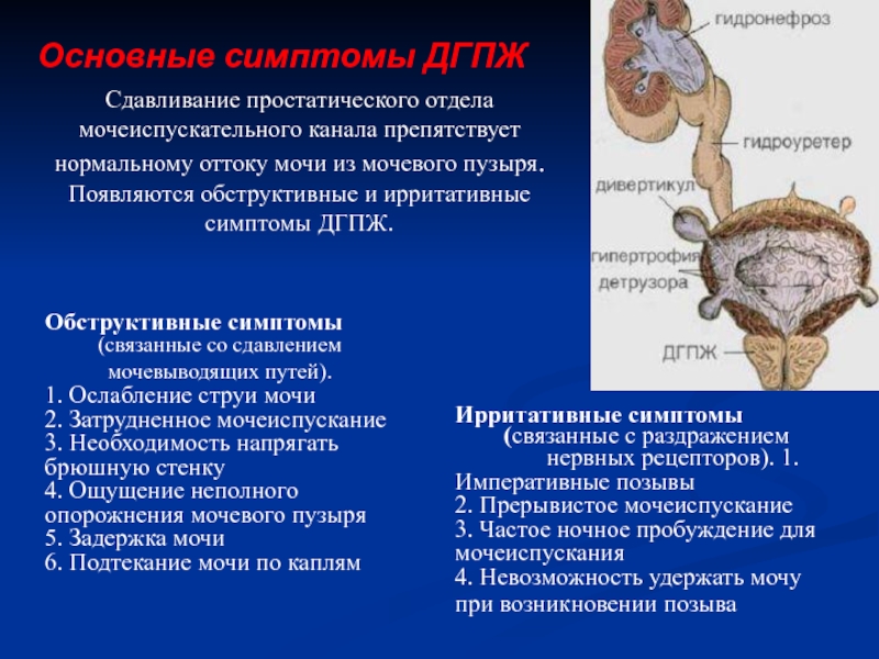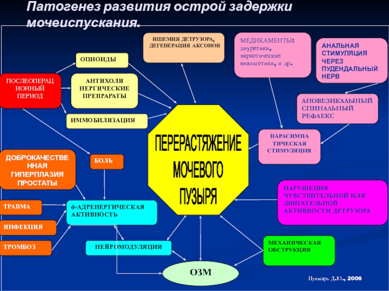 шейки мочевого пузыря, аденома предстательной железы; нарушения иннервации мочевого пузыря: поражения спинного мозга, диабетическая нейропатия;