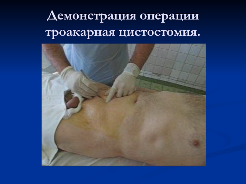 Слайд 35Демонстрация операции троакарная цистостомия.