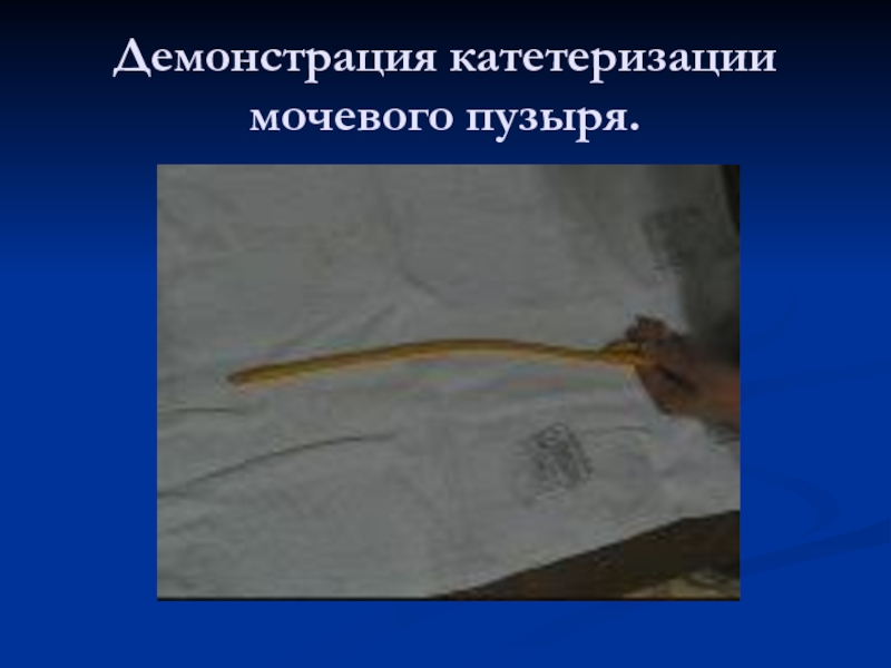 Слайд 34Демонстрация катетеризации мочевого пузыря.