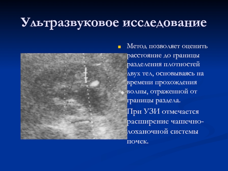 При УЗИ отмечается расширение чашечно-лоханочной системы почек.