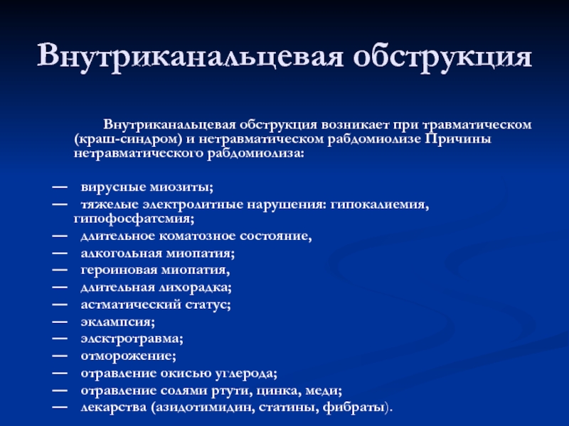 (краш-синдром) и нетравматическом рабдомиолизе Причины нетравматического рабдомиолиза: