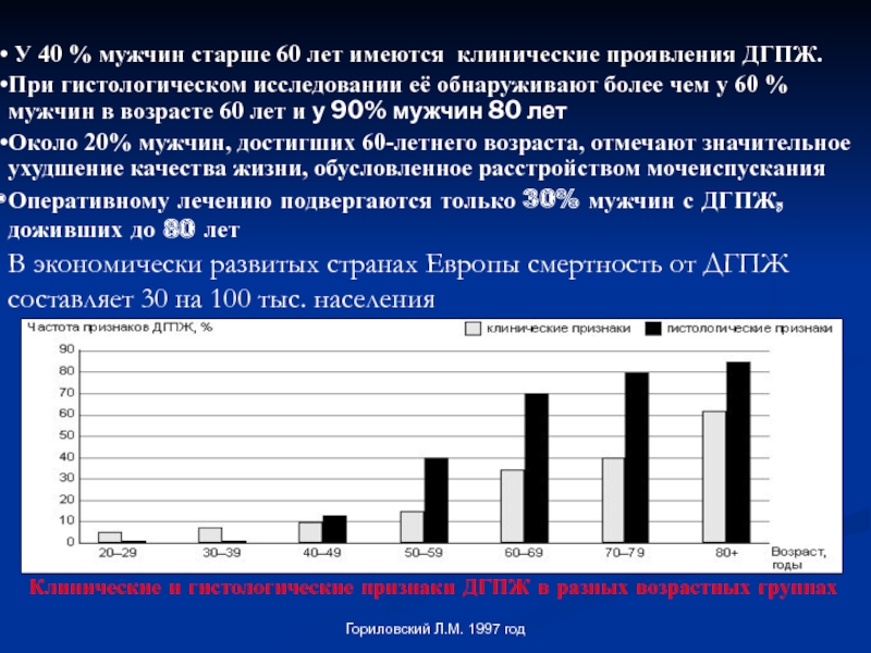 Клинические и гистологические признаки ДГПЖ в разных возрастных группах