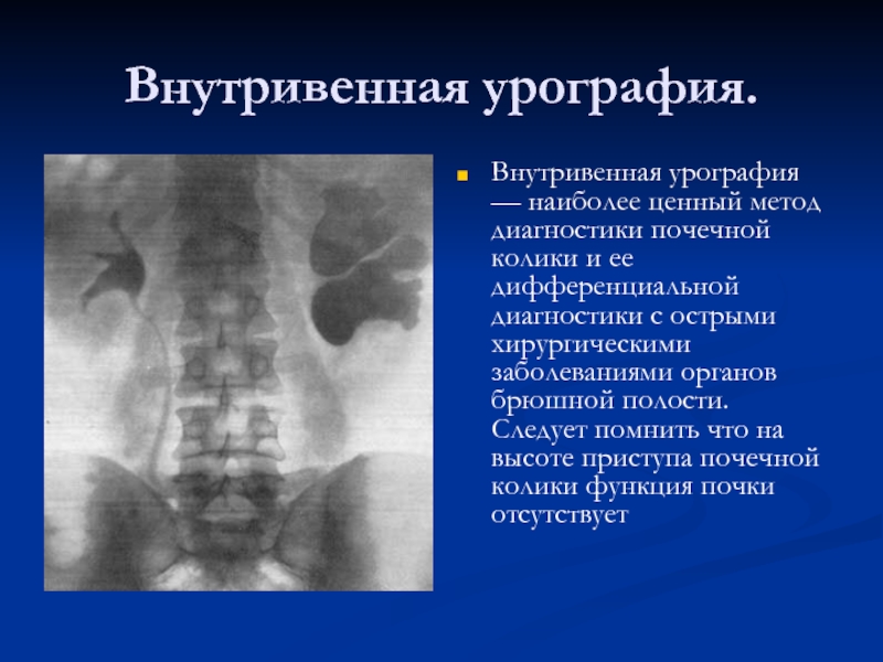Внутривенная урография — наиболее ценный метод диагностики почечной колики