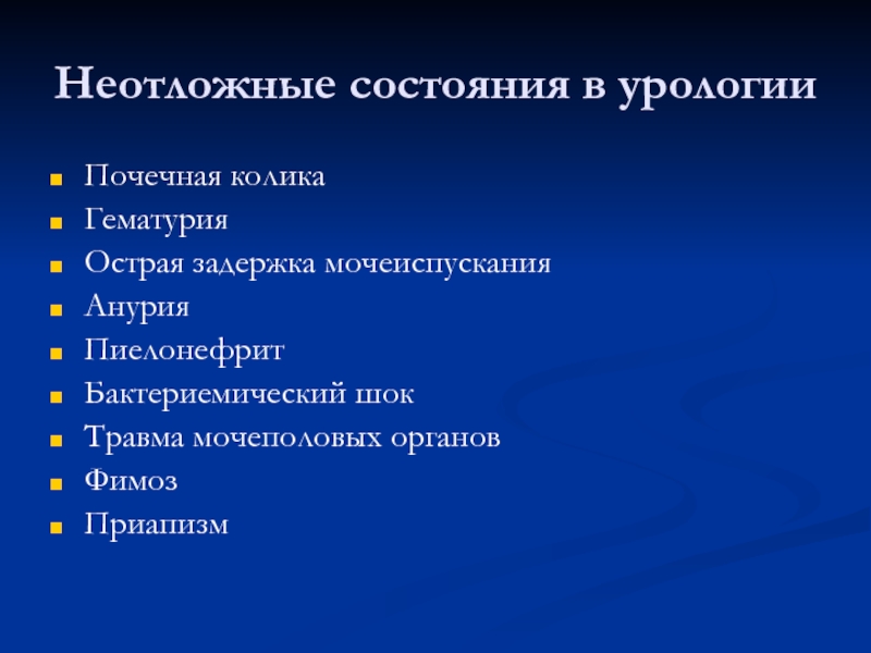НЕОТЛОЖНЫЕ СОСТОЯНИЯ В УРОЛОГИИ.