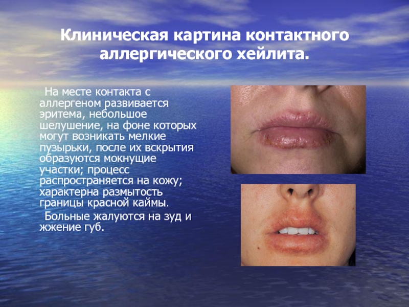 эксфолиативным хейлитом, актиническим хейлитом, контактным аллергическим хейлитом, со стрептококковой и