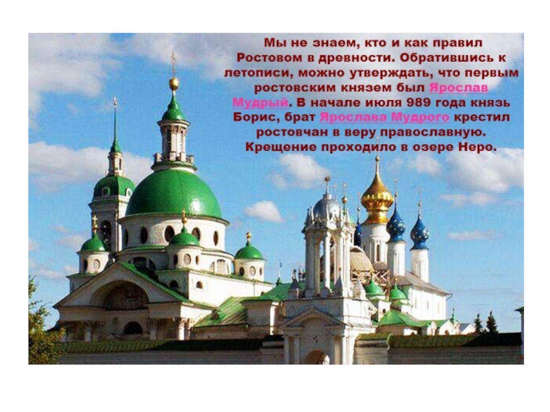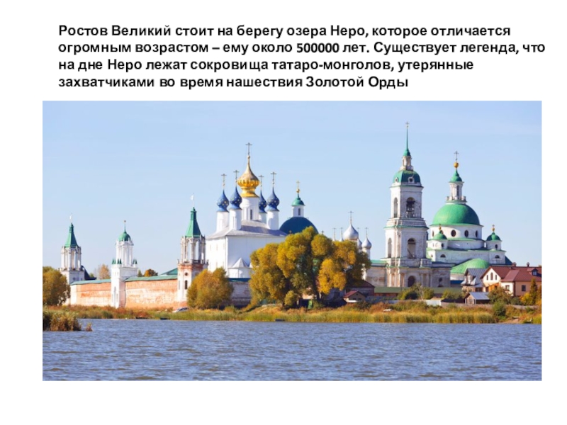 Слайд 1Ростов Великий, часть «Золотого кольца», входит в 15 самых популярных
