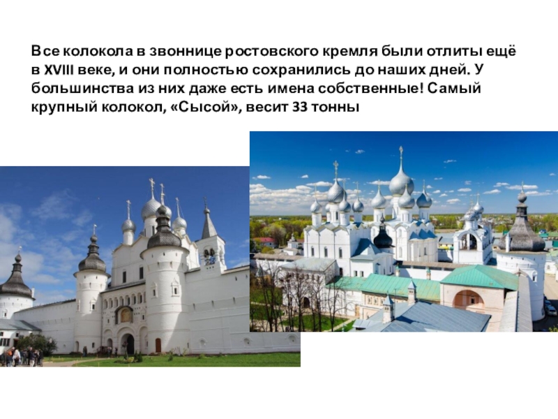Слайд 4Все колокола в звоннице ростовского кремля были отлиты ещё в