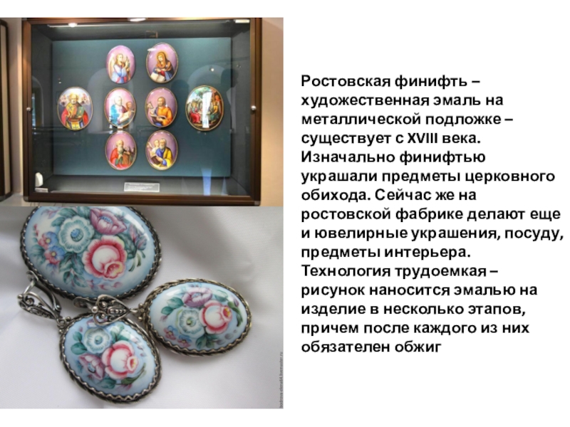 Слайд 7 Ростовская финифть – художественная эмаль на металлической подложке – существует