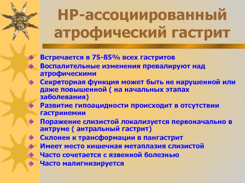Поражение слизистой локализуется первоначально в антруме ( антральный гастрит)