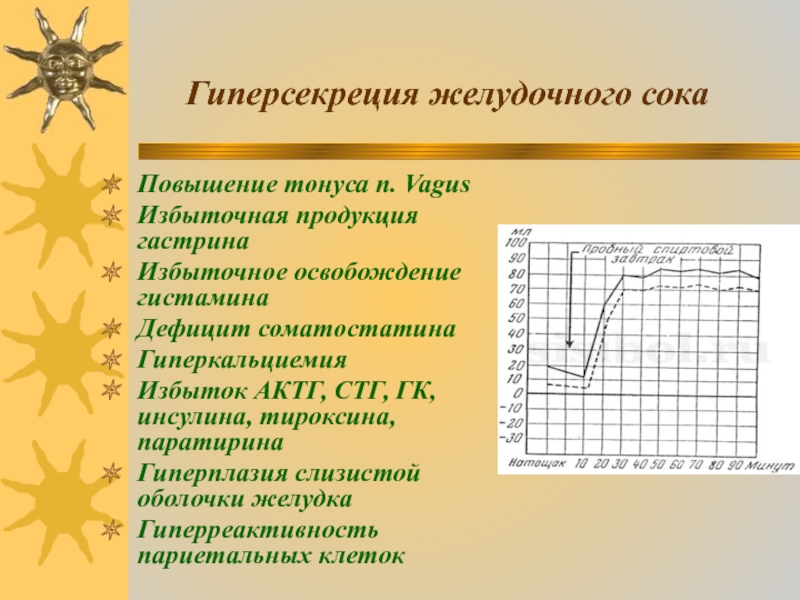 Секреторная функция может быть не нарушенной или даже повышенной (