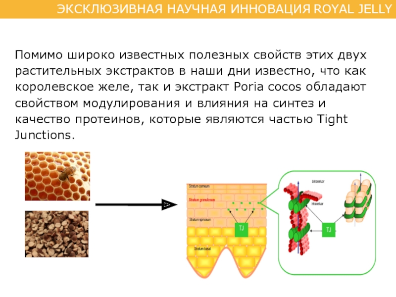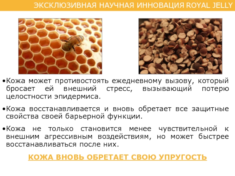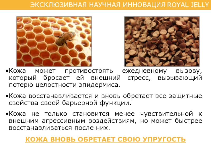 Слайд 17ROYAL JELLY оптимизирует упругость благодаря уникальной синергии, которую обеспечивает союз