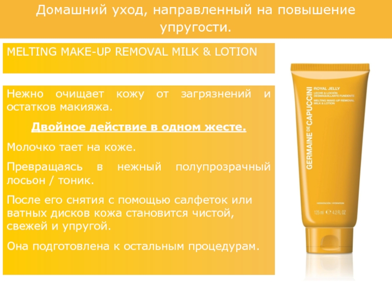 Слайд 40Домашний уход, направленный на повышение упругости.