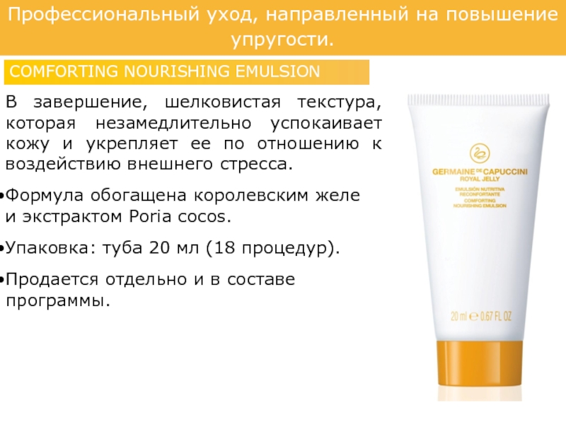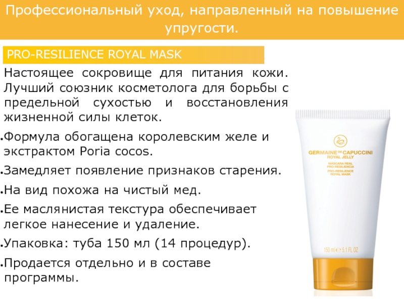 Слайд 35Профессиональный уход, направленный на повышение упругости.
