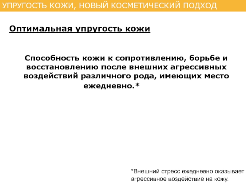 Слайд 12В целом, внешний стресс приводит к потере упругости кожи. Целостность