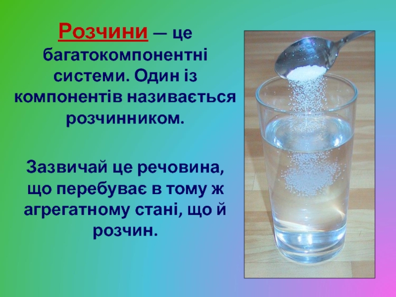 Слайд 3Розчини — це багатокомпонентні системи. Один із компонентів називається розчинником.