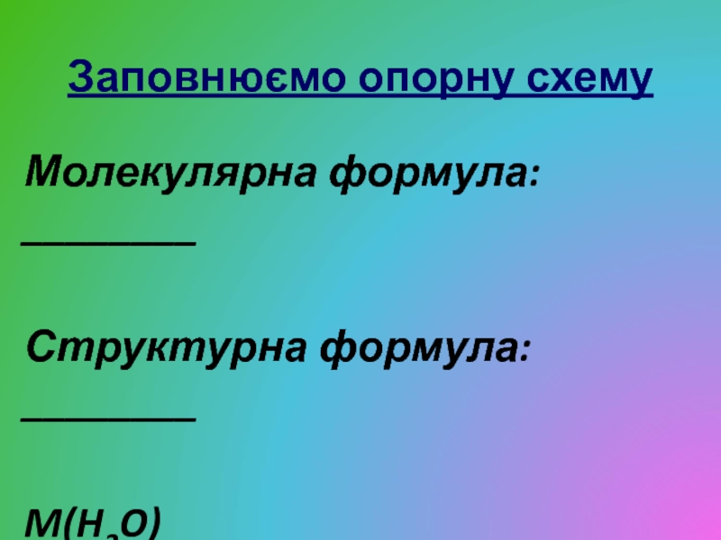 Заповнюємо опорну схемуМолекулярна формула: ________Структурна формула: ________M(H2O) _______________________