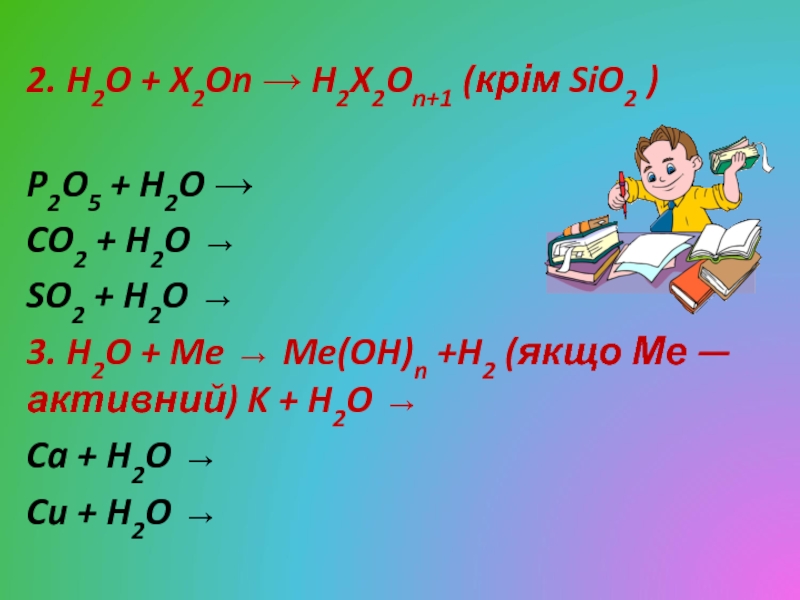 Слайд 142. H2O + X2On → H2X2On+1 (крім SiO2 )