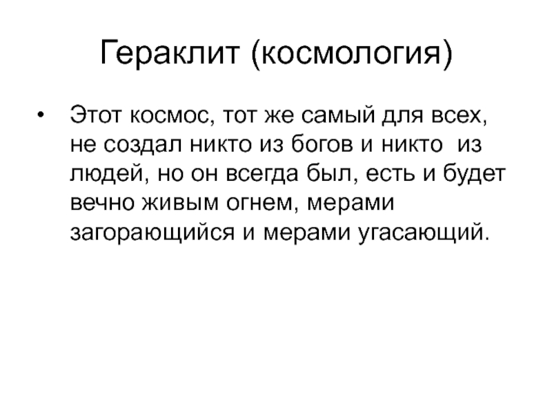 был, есть и будет вечно живым огнем, мерами загорающийся и мерами угасающий.