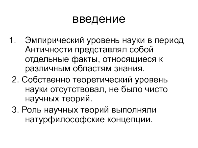 Эмпирический уровень науки в период Античности представлял собой отдельные факты,
