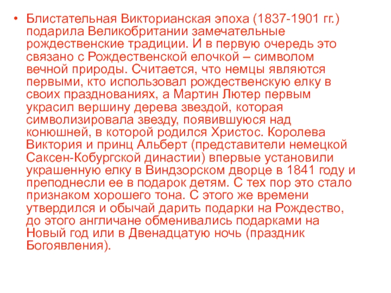 Слайд 6Блистательная Викторианская эпоха (1837-1901 гг.) подарила Великобритании замечательные рождественские традиции.