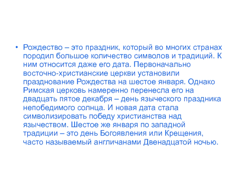 Слайд 2Рождество – это праздник, который во многих странах породил большое