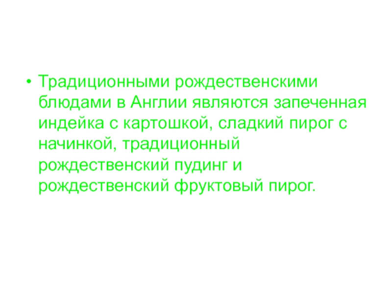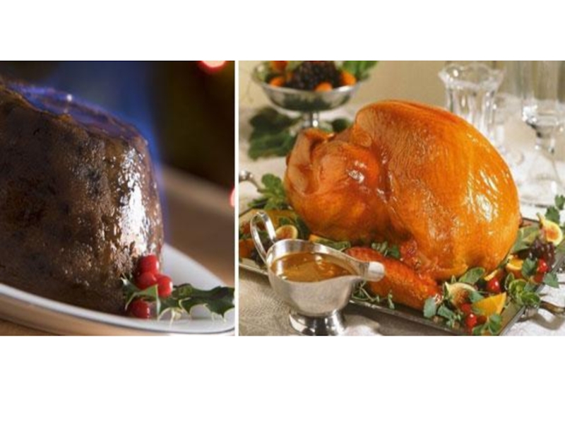 Слайд 25Традиционными рождественскими блюдами в Англии являются запеченная индейка с картошкой,