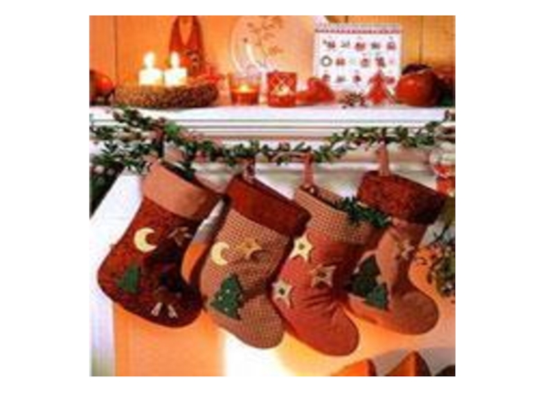воздуху и проникал в дома через дымовую трубу. Спускаясь в один из домов, он обронил несколько золотых монет в носок, который повесили сушиться над очагом. С тех пор в Рождественский сочельник на камин стали вывешивать «носки и чулки в надежде, что туда что-нибудь упадет». И сейчас в канун Рождества дети вешают на камин или край кровати рождественский чулок, чтобы Санта Клаус наполнил его подарками. Эта традиции постепенно приживается и у нас, в России.
