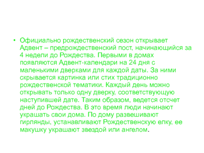 Слайд 16Официально рождественский сезон открывает Адвент – предрождественский пост, начинающийся за