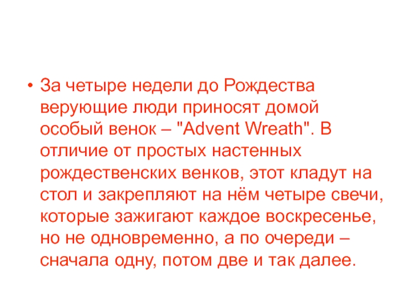 Слайд 18За четыре недели до Рождества верующие люди приносят домой особый