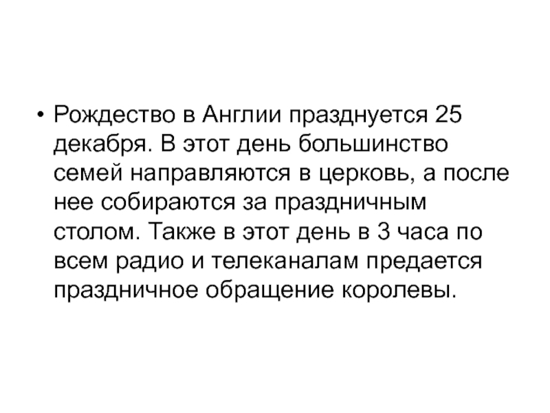 Слайд 23Рождество в Англии празднуется 25 декабря. В этот день большинство