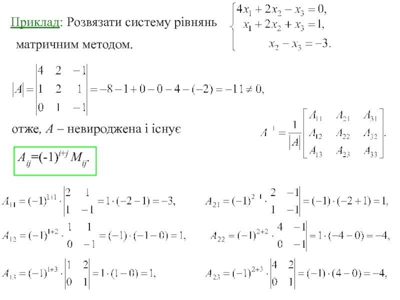 де Аij – алгебраїчні доповнення відповідних елементів матриці.