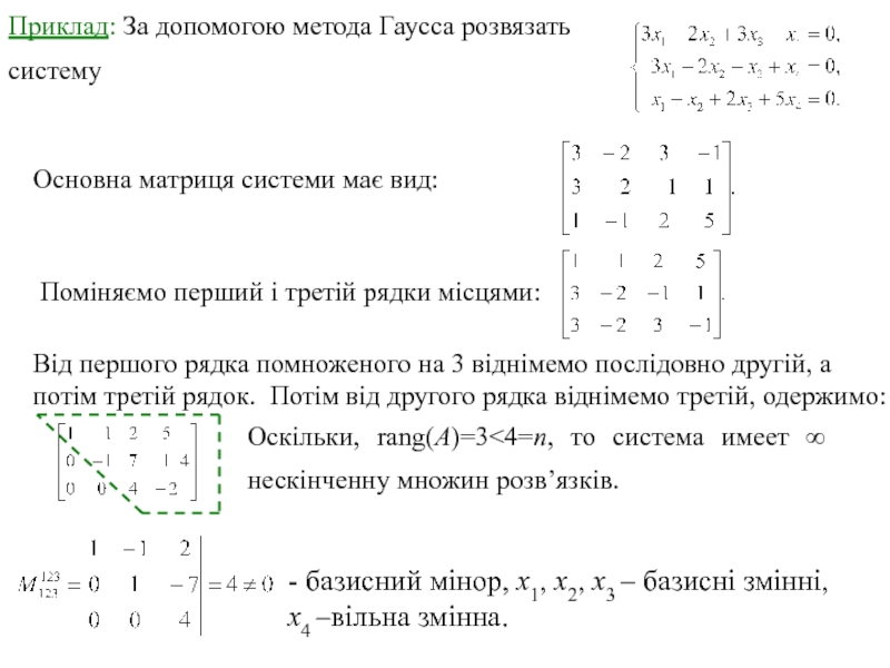 - базисний мінор, х1, х2, х3 – базисні змінні, х4 –вільна змінна.