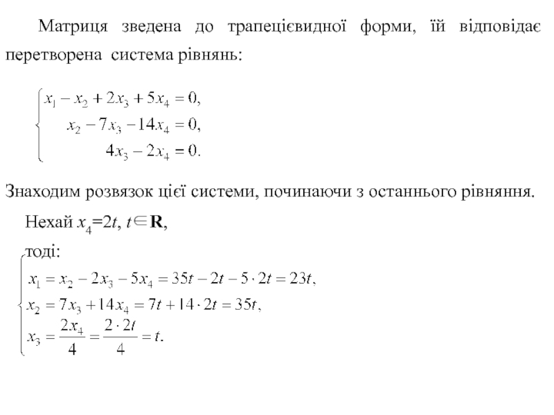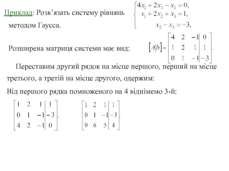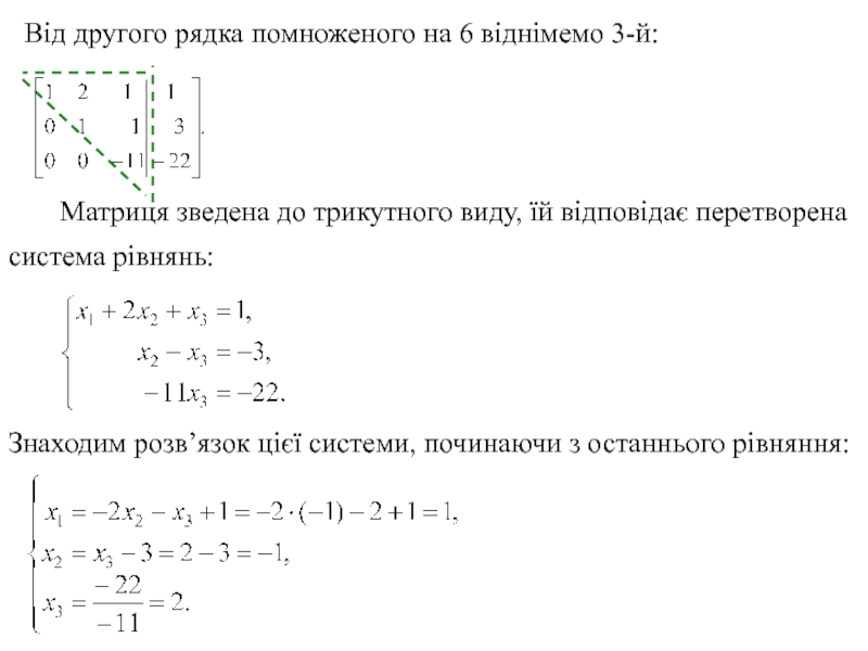 потім третій рядок. Потім від другого рядка віднімемо третій, одержимо: