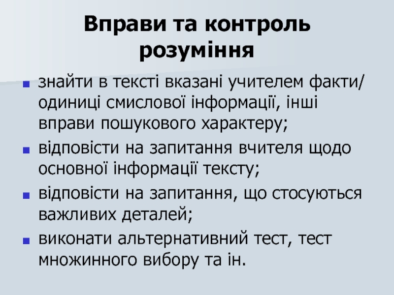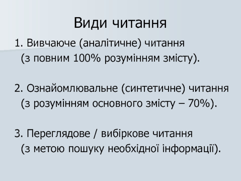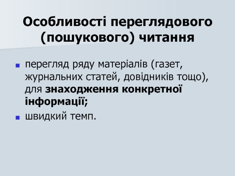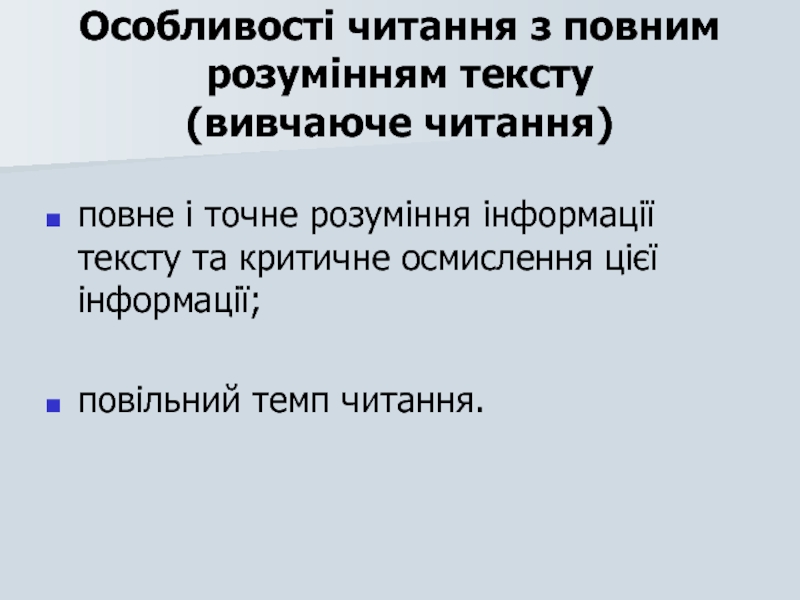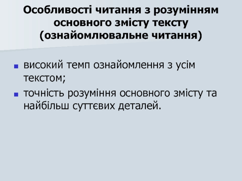 Слайд 9Особливості читання з розумінням основного змісту тексту