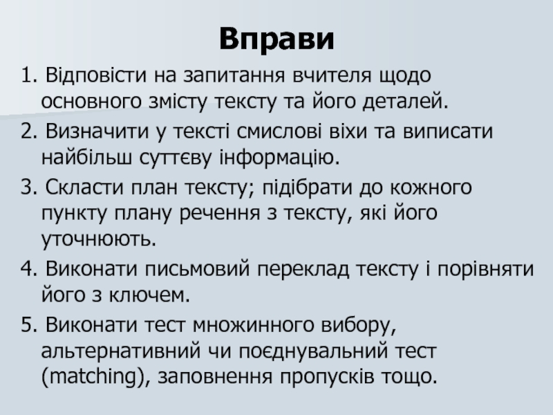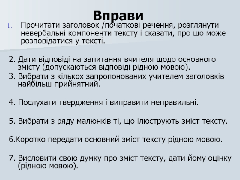 7. Висловити свою думку про зміст тексту, дати йому оцінку (рідною мовою).