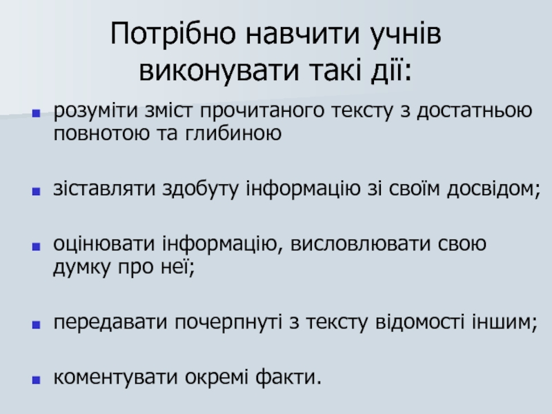 Слайд 10Потрібно навчити учнів виконувати такі дії: