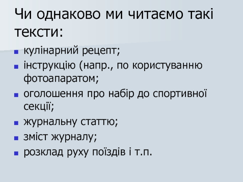 Слайд 3Чи однаково ми читаємо такі тексти:
