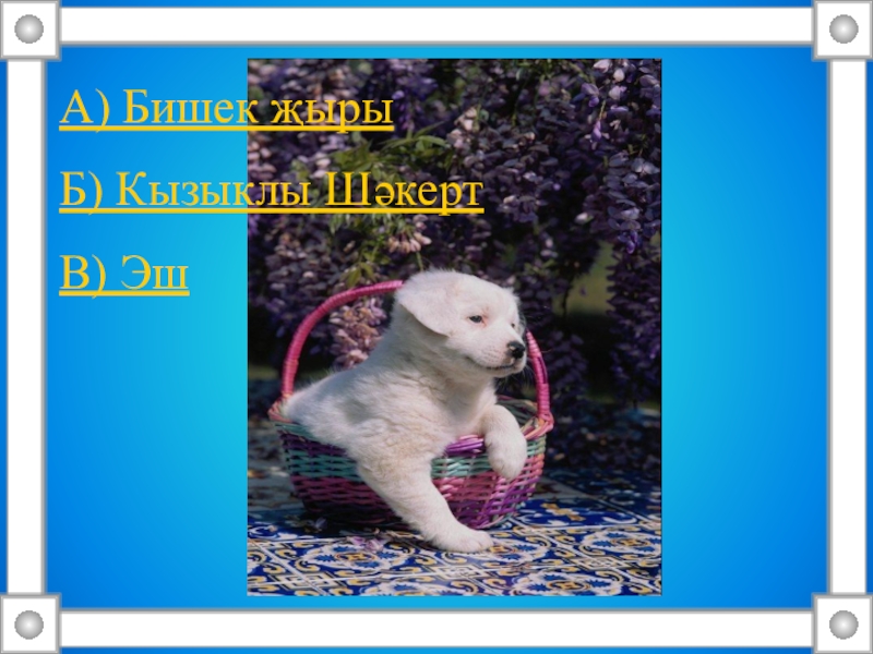 А) Бишек җырыБ) Кызыклы ШәкертВ) Эш