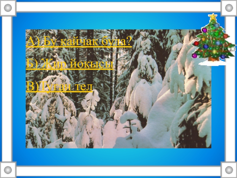 А) Бу кайчак була? Б) Җир йокысыВ)Туган тел