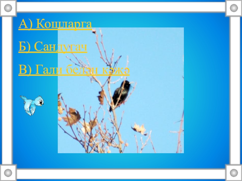А) КошларгаБ) СандугачВ) Гали белән кәҗә