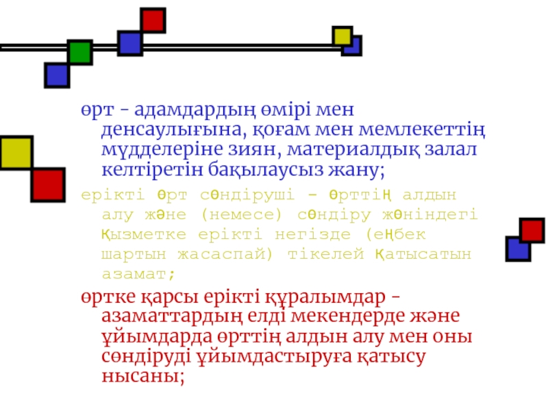 Слайд 7өрт - адамдардың өмірі мен денсаулығына, қоғам мен мемлекеттің мүдделеріне