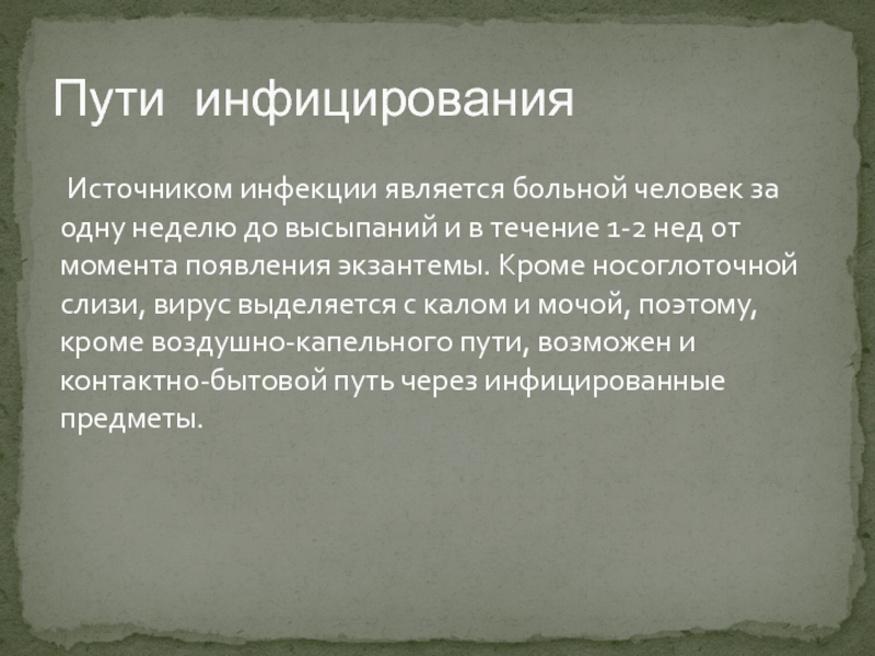 высыпаний и в течение 1-2 нед от момента появления экзантемы.