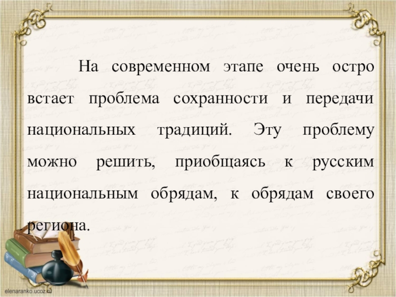 проблема сохранности и передачи национальных традиций. Эту проблему можно решить,