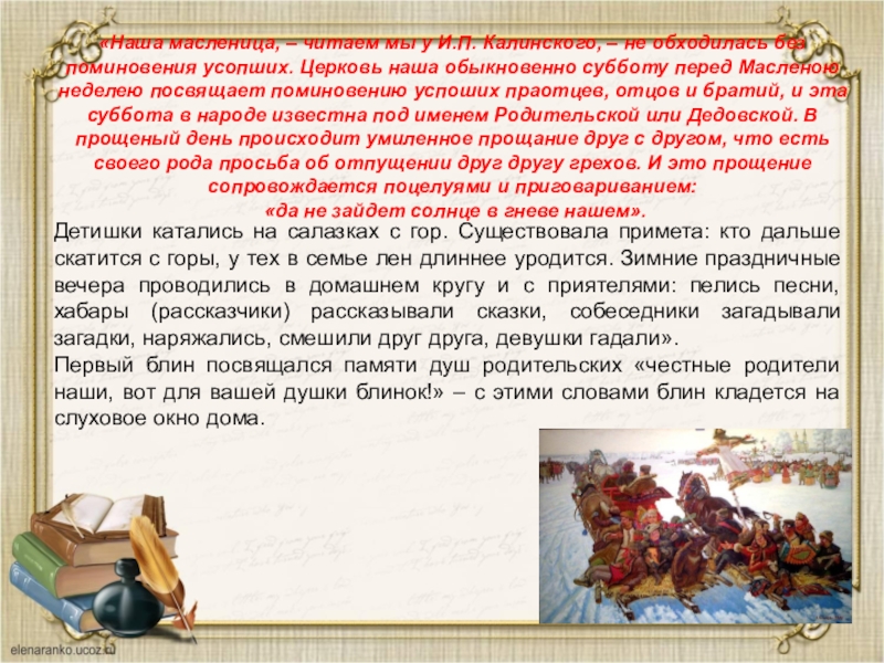 Слайд 24«Наша масленица, – читаем мы у И.П. Калинского, – не обходилась