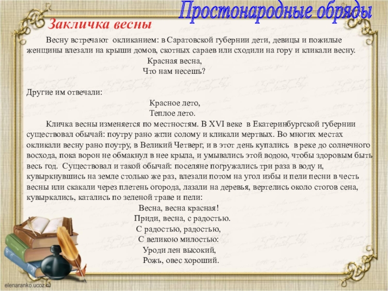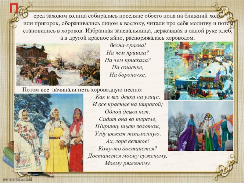 Слайд 15 Весну встречают окликанием: в Саратовской губернии дети, девицы и пожилые