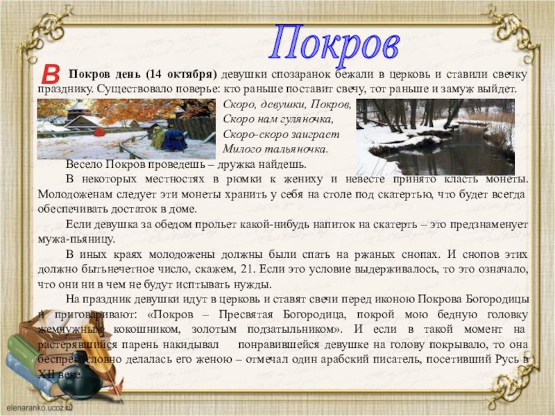 Слайд 7 Покров день (14 октября) девушки спозаранок бежали в церковь