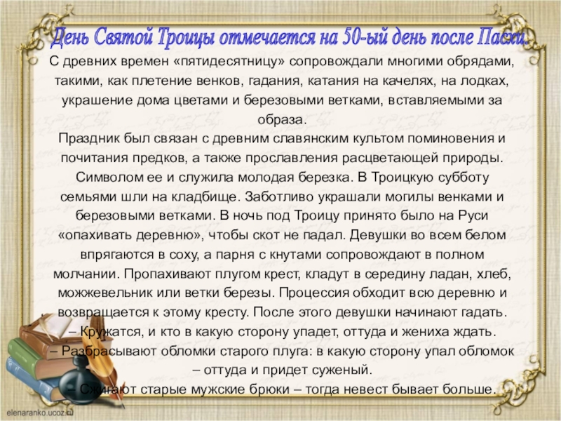 С древних времен «пятидесятницу» сопровождали многими обрядами, такими, как плетение