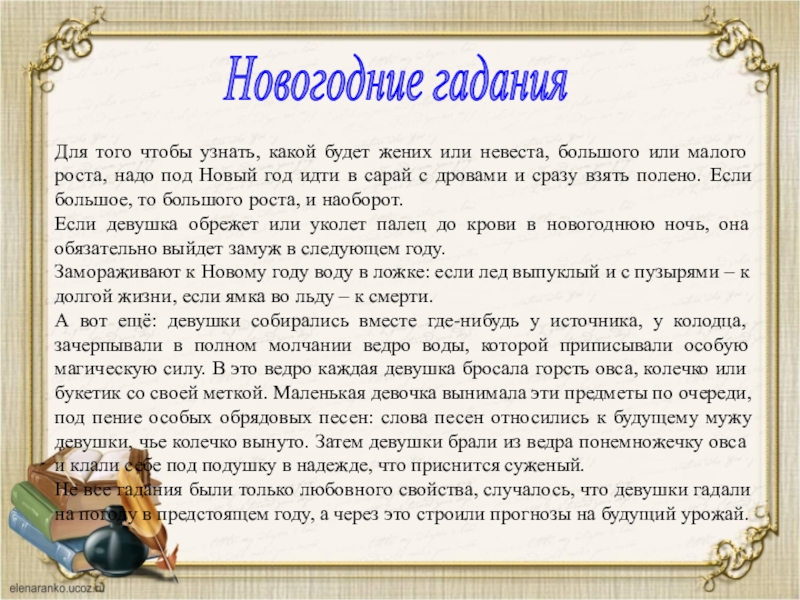 На святках, во второй половине, когда начинались двухнедельные «страшные вечера» между Новым годом и Крещеньем – девушки гадали особенно много.