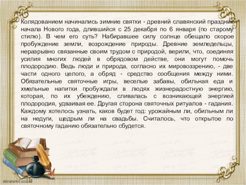 Слайд 12Колядованием начинались зимние святки - древний славянский праздник начала Нового